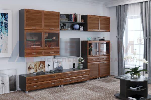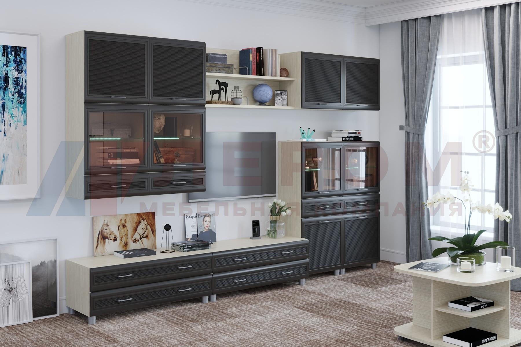 Корпусная мебель для гостиной «Мелисса» — это модульная мебель. Более 80 модулей позволяют составить огромное множество вариантов готовых композиций.