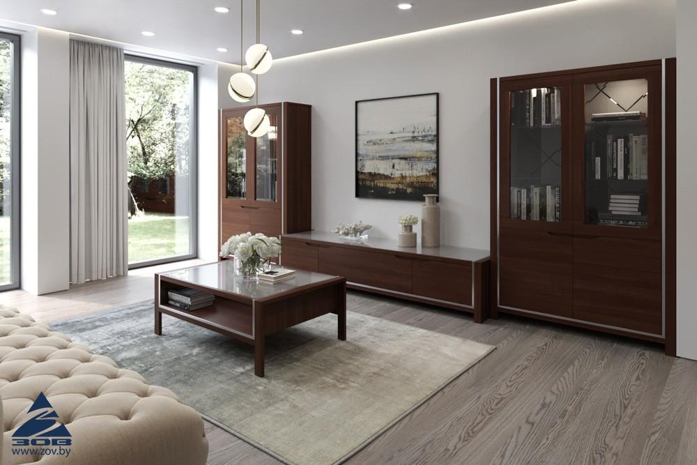 | Дополнительная информация | фасады с витринами (внутри зеркальные полотна с гравировкой, полки из стекла); фасады из массива (внутри полки ЛДСП); ручка фрезерованная |