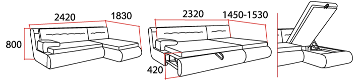 | Спальное место | длина2320 х ширина1450-1530 х высота420 |